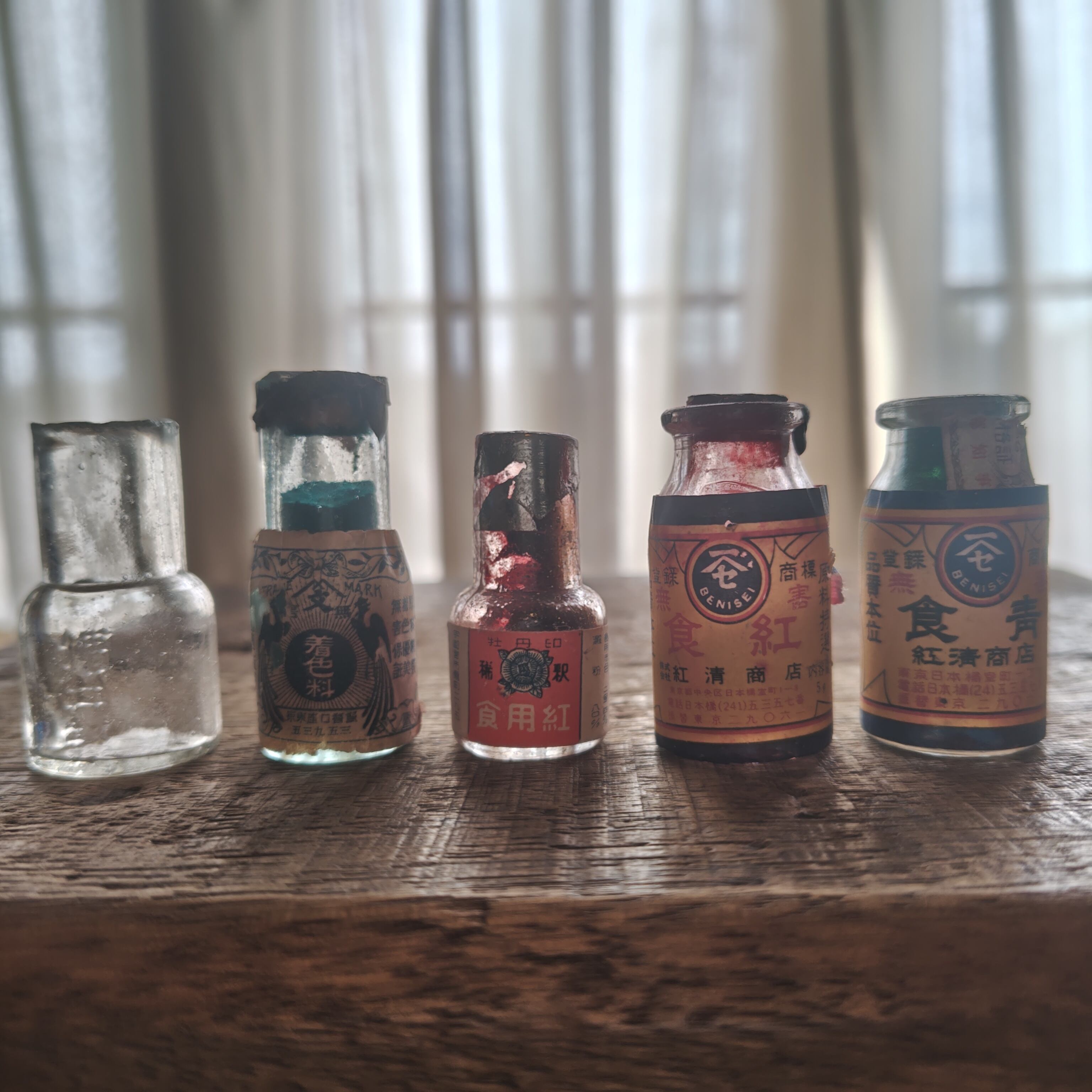 戦前の食紅瓶五点