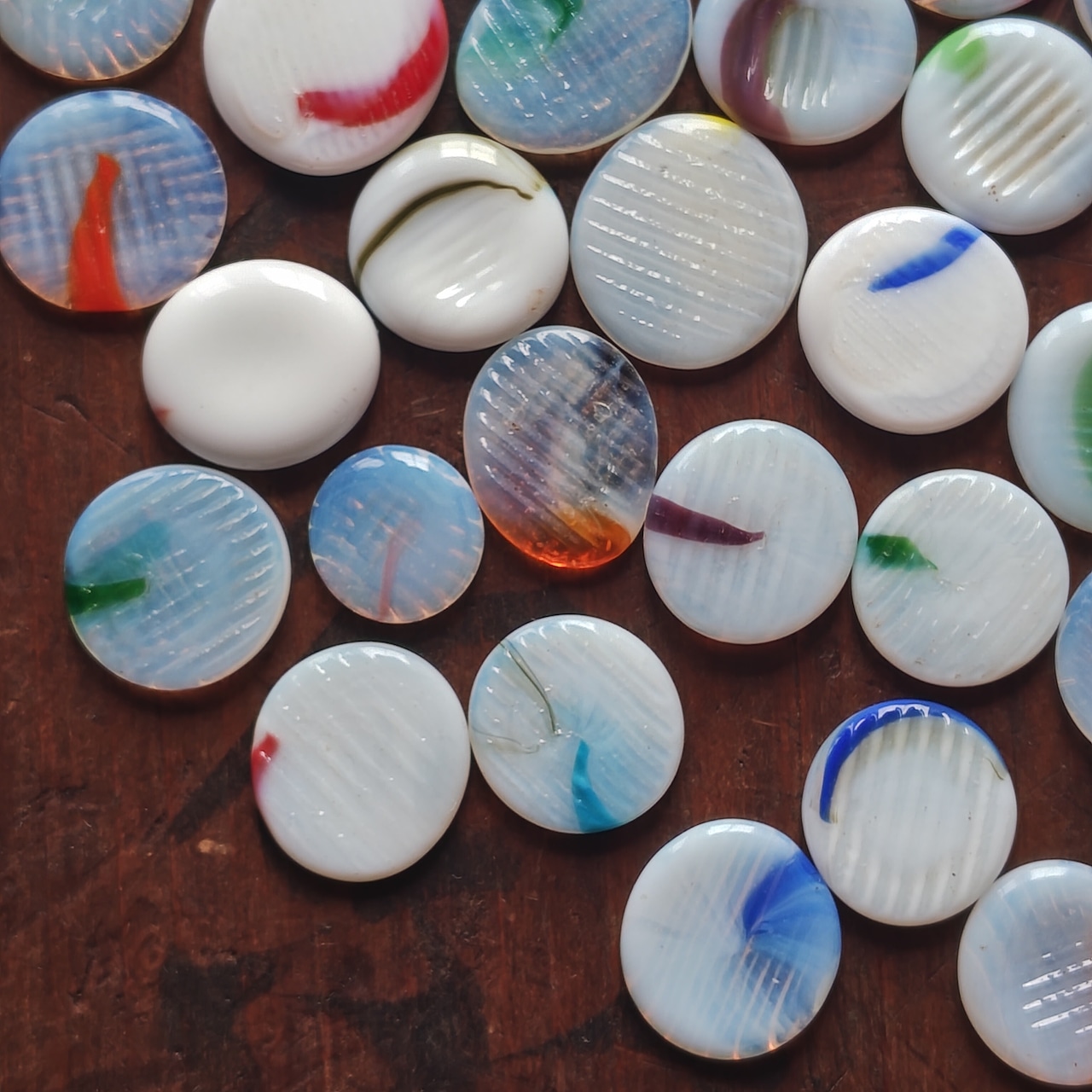 乳白色の古いおはじき56枚