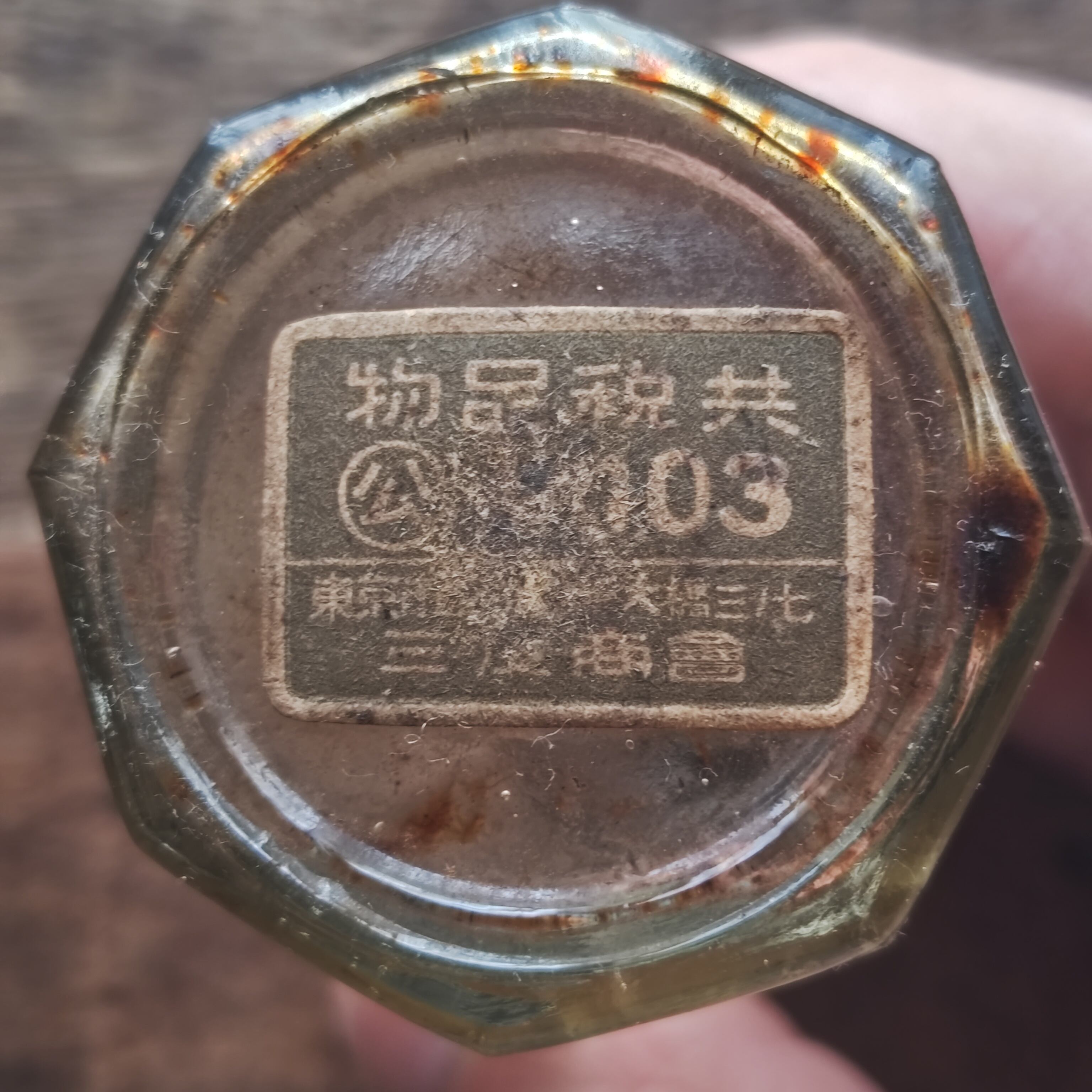ガラスの瓶栓が残存してますが、経年により固定されてしまっていて取り外し出来ません