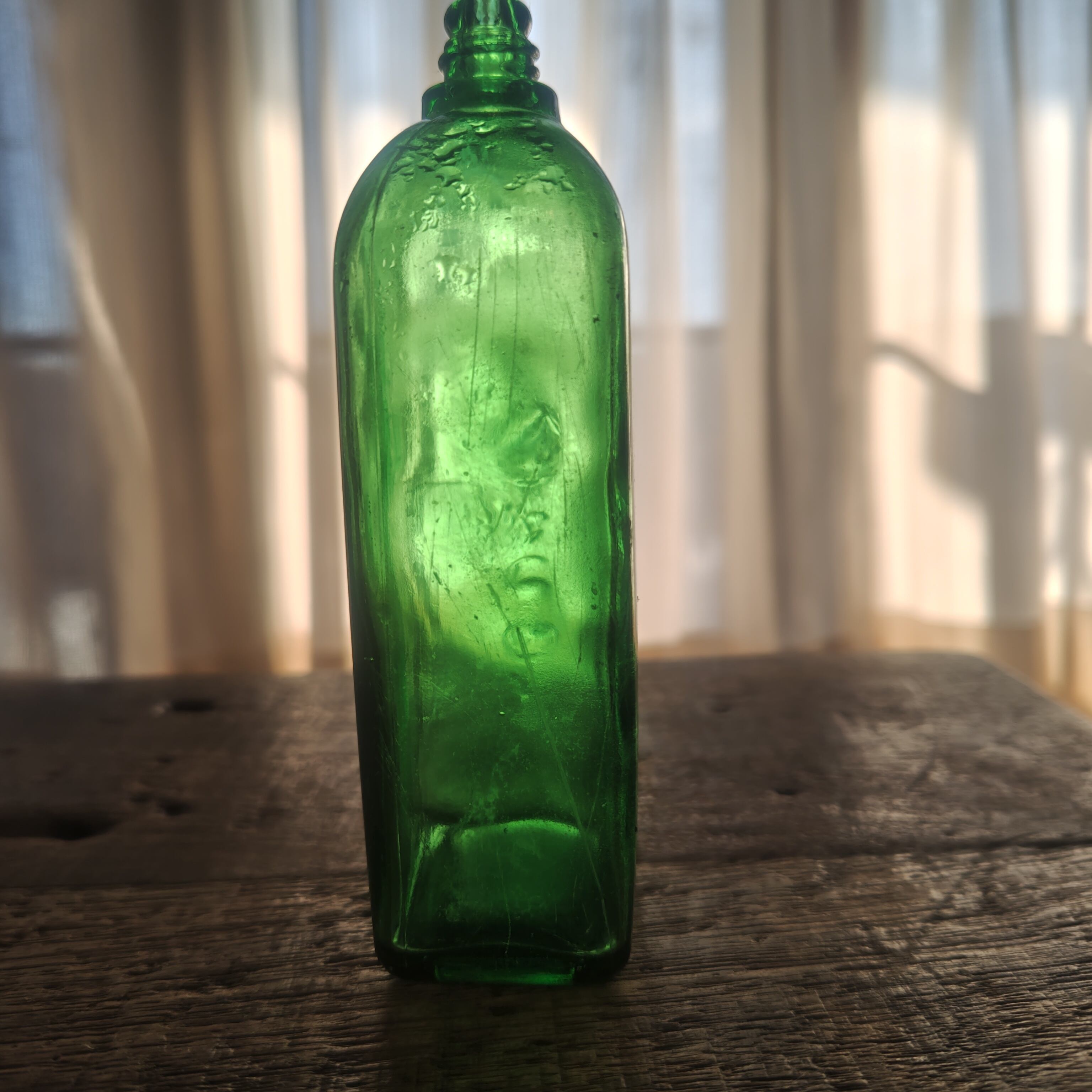 割れ、欠け、ヒビなどはございませんが、全体的に瓶内に汚れやくすみ、外側には傷があります